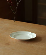 The plate has an elegant matte white "shuangbai" glaze. The purity and simplicity of the plate emphasizes its elegant form and enhances the experience of its usage.