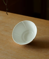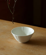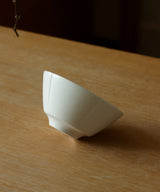 The bowl has an elegant matte white "shuangbai" glaze on both the inside and outside. The purity and simplicity of the bowl emphasizes its elegant form and enhances the experience of its usage.