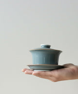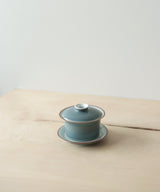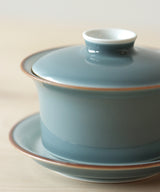 Exquisite monochrome color-glazed porcelain gaiwan made by Rushi Studio in Jingdezhen, China.