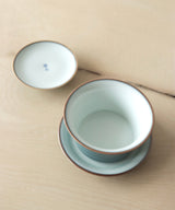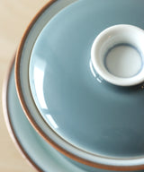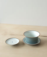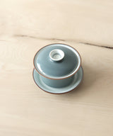 Each gaiwan and tea cup is hand thrown on the potter’s wheel. The glazes are applied by hand to the ceramic body both on the interior and exterior, and fired in the kiln at high temperatures exceeding 1300°C.