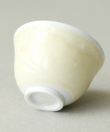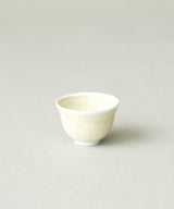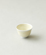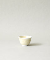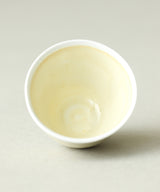 The cup has a beautiful and understated yellow glaze on both the inside and outside. It is thin and boasts an elegant shape. Fitting perfectly in the hand and on the lips for drinking tea.