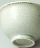 A beautiful tea cup crafted by Jingdezhen ceramicist Wang Xinghua. It has a delicate and elegant shape and a slightly curved lip that is perfect for sipping tea. The cup has an elegant matte green celadon glaze that Wang formulated himself. It has uniquely scattered freckles that arise from the iron rich clay body.