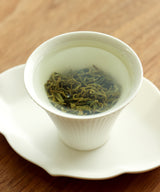 We find the ocean in this tea, and the salty air that the trees have flourished in. It is soft and saline on the palate, with notes of algae, green popcorn, and chlorophyll. This tea has fluid, aqueous energy: it feels refreshing and cleansing, much like a swim in the sea.