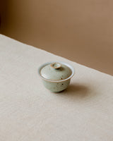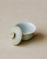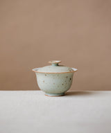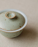 A beautiful one-of-a-kind gaiwan crafted by Jingdezhen ceramicist Wang Xinghua. In a stunning new glaze: pastel aqua, speckled evenly with dark, variegated dots.