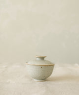 A serene, beautiful gaiwan with the most soothing and delicate glaze to look at - fitting for the light and freshness of spring. The outside glaze is pastel grey-green, slightly textured and satiny, with a few iron spots. The inside is a soft, pale blue-grey glaze, light crackles will develop through use, and may darken with time.