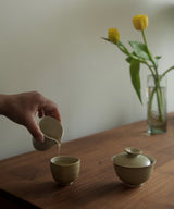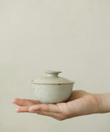 The gaiwans have a beautiful and harmonious presence. The elegant forms and organic color tones are delightful to look at, to contemplate and reflect on. The neutral glaze on the inside beautifully highlights the tea leaves as they are brewing - it is a pleasure to use for everyday tea making.