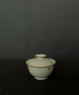 A lovely gaiwan with a calming and soothing presence. The shape is beautiful and endearing - reminding us of a perfectly round bao. The outside is a neutral grey-green glaze with a few iron spots. The inside is a soft, pale blue-grey glaze; light crackles will develop through use, and may darken with time.
