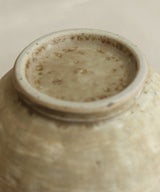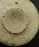 This is a visually stunning gaiwan. The colour and textures created by the wavy brushstrokes of the artist brings to mind fields of wheat. The exterior is lightly textured with iron spots. The inside is a soft, pale blue-grey glaze with iron spots. Light crackles on the inside glaze will develop through use, and may darken with time.