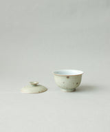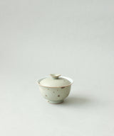 He throws the gaiwans on the potter’s wheel and shapes each gaiwan by hand from his own special formulation of Jingdezhen clay and porcelain clay. After bisque firing at 800°C, he applies his own glazes by hand. The gaiwans are then reduction-fired at 1300°C.