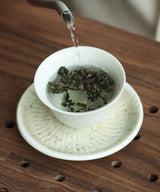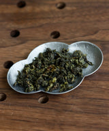 This Golden Cassia, crafted by Master Lin, has a deep, warm and floral fragrance and yet it’s taste is gentle and sweet. This makes the tea enveloping, while still being very light on the palate. It is beautiful to watch the leaves open in the gaiwan, like crumpled pages that tell the story of its making: they are marked with varying colours by the yaoqing process, and creased by the constriction that came from their roasting.