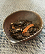 Naturally aged Shoumei tends to have a subtle aftertaste of aged orange peel on its own. Combining these leaves with the orange peels themselves produces tea with a beguiling depth of flavour. The spiced, medicinal qualities of both the white tea and the aged peels play off of one another, offering us something very satisfying, as well as balancing and supportive, especially suited to the winter months.