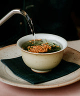 This inspiring Genmaicha from Maruhachi Tea Factory is a blend of fresh sencha from Shizuoka and Kagoshima and toasted rice, grown in Komatsu City of Ishikawa Prefecture. For the first several infusions it is definitely more sencha forward, with the subtle sweetness of toasted rice backing the briny, electric green notes of the tea.