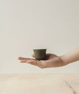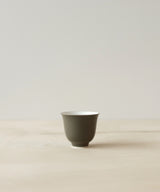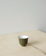 Exquisite matte olive green color-glazed porcelain tea cup, made by Rushi Studio in Jingdezhen, China.