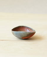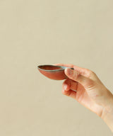 This stunning tea scoop emerged from the kiln with an organic shape and striking orange-red hues on the inside. The back has beautiful orange and greyish-blue hues. It is thin and delicate - a result of patience, dedication and focus on the wheel. An extraordinary work of art to be cherished on the tea table for a lifetime.