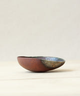 This stunning tea scoop emerged from the kiln with a stunning matte and textured bronze hues on the inside and the back. It has an organic shape, and is thin and delicate - a result of patience, dedication and focus on the wheel. An extraordinary work of art to be cherished on the tea table for a lifetime.