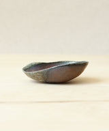 This stunning tea scoop emerged from the kiln with beautiful matte bronze and reddish-brown hues in an organic shape. It is thin and delicate - a result of patience, dedication and focus on the wheel. An extraordinary work of art to be cherished on the tea table for a lifetime.