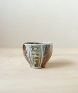 Wood fired, medium sized tea cup made by Danny Kostyshin in Vancouver, BC. Mixed stoneware clay body.