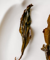 These semi-wild Shuixian tea trees are around 50 years old, and grow at 2500 ft elevation. The special thing about this Shuixian is the unusual way it has been processed. Most of the time Shuixian oolongs are roasted over charcoal for 4 rounds. This Shuixian did not receive any charcoal roasting. Instead, it was baked at low heat for over 30 hours. This slow, and long process reveals very different qualities inherent to the Shuixian varietal – without the charcoal notes we see how sweet and woody this tea is on its own. This more delicate process also emphasizes the unique terroir of White Crane Mountain and the particular mineral quality its ideal conditions impart to the tea that grows there.