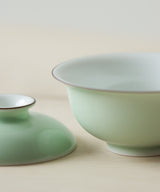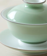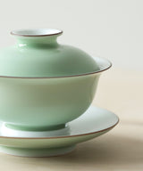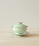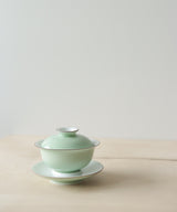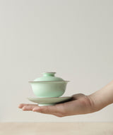 Exquisite monochrome color-glazed porcelain gaiwan made by Rushi Studio in Jingdezhen, China.