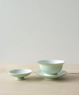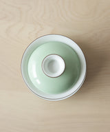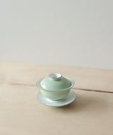 Each gaiwan and tea cup is hand thrown on the potter’s wheel. The glazes are applied by hand to the ceramic body both on the interior and exterior, and fired in the kiln at high temperatures exceeding 1300°C.