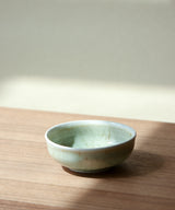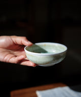 Wei throws each bowl carefully by hand. The pieces are air-dried for 3 days until they are bone dry before trimming and then bisque firing. The cup goes into the kiln without any glaze on the outside and emerges with its own unique color, texture and sheen from the atmosphere inside the kiln. Each piece is fired in the soda kiln for 2 days, where temperatures reach up to 1300°C.