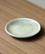 Wei throws each plate carefully by hand. The pieces are air-dried for 3 days until they are bone dry before trimming and then bisque firing. The cup goes into the kiln without any glaze on the outside and emerges with its own unique color, texture and sheen from the atmosphere inside the kiln. Each piece is fired in the soda kiln for 2 days, where temperatures reach up to 1300°C.
