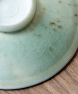 Wei throws each plate carefully by hand. The pieces are air-dried for 3 days until they are bone dry before trimming and then bisque firing. The cup goes into the kiln without any glaze on the outside and emerges with its own unique color, texture and sheen from the atmosphere inside the kiln. Each piece is fired in the soda kiln for 2 days, where temperatures reach up to 1300°C.