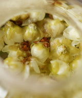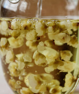 This year’s harvest is particularly potent and fresh tasting. The tea smells and tastes like marzipan, and, once in water, the little flowers open as though still alive.