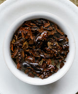 True to its hybrid nature, the tea shows characteristics of both white tea and pu’erh. It has all of the intense sweetness of a white tea, with the depth and downward-pull of a high quality pu’erh. There is a violet note to this tea if you are looking for traces of its purple origin, laid on top of the taste of burnt sugar.