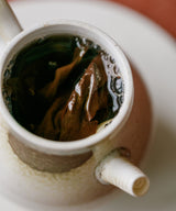 We feel Li’s inherited understanding of tea in this balanced, full bodied Red Jade. The dark, autumnal looking tea leaves smell beautiful and compelling, giving off a fresh, minty aroma followed by the sweetness of medjool dates. This tea’s warm tannins suspend fruity, apricot flavors across the palate, finishing with a saffron note that draw us deep into its interesting, hybrid flavour.
