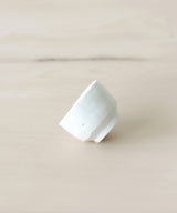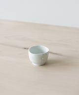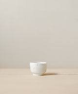 A simple and minimal small tea cup, it has a white porcelain glaze on both the outside and inside. Fitting snugly in the hand, it is a perfect size for small sips of tea over conversation with a friend, or as part of your morning ritual.