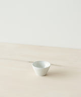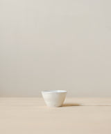 A simple small tea cup with a calming shap, it has a white porcelain glaze on both the outside and inside, with a few speckles. Fitting nicely in the hand, it is a perfect size for small sips of tea over conversation with a friend, or as part of your morning ritual.