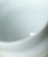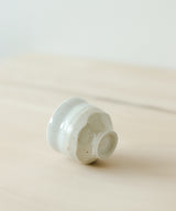 A simple and minimal small tea cup, the outside is glazed partially with porcelain. The inside is a beautiful and soothing crackled grey blue glaze. Fitting snugly in the hand, it is a perfect size for small sips of tea over conversation with a friend, or as part of your morning ritual.