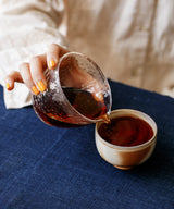 Brewing it now, we are quite astounded by the quality of this Liu Bao. Its luminous, ruby red liquor darkens throughout infusions, becoming increasingly dense with colour and weighty in the mouth, but no less clear in both taste and appearance.