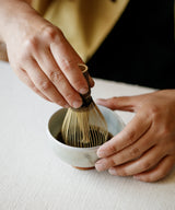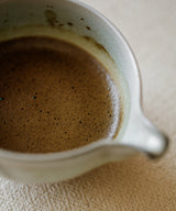 While being whisked this hojicha looks very dark, like cocoa. Even when mixed with milk it appears exceptionally rich. Its taste is even softer and smoother than we would expect: it has a totally edgeless mouthfeel and a sweet, woody finish that lingers long after we’ve swallowed. Its strong, enveloping taste is very comforting: it makes for a sensual drink, and one that keeps us wanting to return to it …