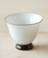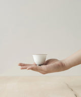 Exquisite pearl white porcelain tea cup, made by Rushi Studio in Jingdezhen, China.