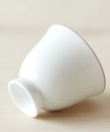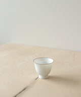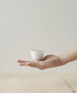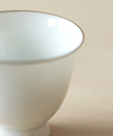 Exquisite pearl white porcelain tea cup, made by Rushi Studio in Jingdezhen, China.