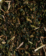 This unusual tea is made from second harvest sencha that has been roasted, hojicha style. This is not something we see very often, as sencha is a steamed tea! To make this tea the sencha, or the steamed leaves, and the finer leaves are roasted over low heat while the stems are roasted over high heat. The sum of all of these kinds of tea and techniques creates a mysterious and fragrant hybrid that we can only call, hojisencha. As odd as it sounds, for many Japanese people this tea is nostalgic, and speaks of rural areas that historically have made tea in this manner.