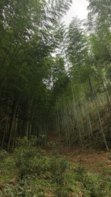 Century-old wild tea trees grow here, scattered amongst the gigantic bamboo forest. Their branches and trunks are covered with moss, indicating both their age and their vitality. Both stems and leaves were picked from them to make this tea. Similar to what we see in many white teas, these rustic stems make this tea suitable for aging, as the stems have more nutrients and enzymatic compounds in them that preserve the tea and develop character over time.