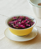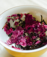 This Lapsang Souchong is foraged from wild tea trees that grows wild in the bamboo and fir forest, at 4000 ft above sea level. Petals of our Organic Crimson Roses are blended with the tea, and the result is a remarkably delicious tea. Lingering notes of orchids, sweet plum and alpine flowers on the palate.