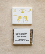 This boxset include one 000 incense burner, and one package with 20 sticks of 001 Rise & Shine.