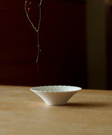 The plate has an elegant matte white "shuangbai" glaze. The purity and simplicity of the plate emphasizes its elegant form and enhances the experience of its usage.