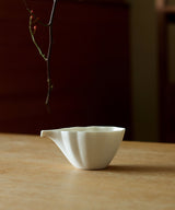 The pitcher has an elegant matte white "shuangbai" glaze on the outside, paired with a glossy sweet white glaze on the inide. The graceful spout gives a smooth and extremely controlled pour.