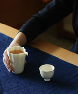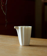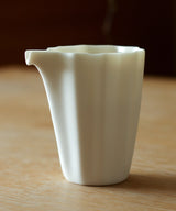 The pitcher has an elegant matte white "shuangbai" glaze on the outside, paired with a glossy sweet white glaze on the inide. The graceful spout gives a smooth and extremely controlled pour.