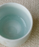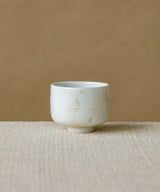 Wei throws each cup carefully by hand. The pieces are air-dried for 3 days until they are bone dry before trimming and then bisque firing. The cup goes into the kiln without any glaze on the outside and emerges with its own unique color, texture and sheen from the atmosphere inside the kiln. Each piece is fired in the soda kiln for 2 days, where temperatures reach up to 1300°C.