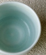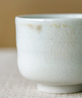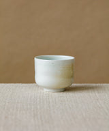 Wei throws each cup carefully by hand. The pieces are air-dried for 3 days until they are bone dry before trimming and then bisque firing. The cup goes into the kiln without any glaze on the outside and emerges with its own unique color, texture and sheen from the atmosphere inside the kiln. Each piece is fired in the soda kiln for 2 days, where temperatures reach up to 1300°C.