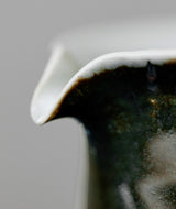 A beautiful one-of-a-kind pitcher crafted by Jingdezhen ceramicist Wang Xinghua. It has a delicate curved spout that offers extremely precise and controlled pours.