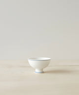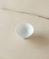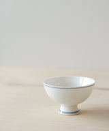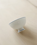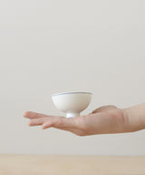 Exquisite cloud white porcelain tea cup with hand painted blue lines, made by Rushi Studio in Jingdezhen, China.