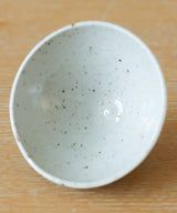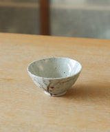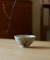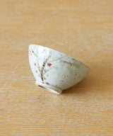 A one-of-a-kind tea cup or small bowl with a beautiful shape. Simple and minimal, it has a grey speckled and crackled glaze on the outside with hand painted cherry blossom motifs. The inside is a grey speckled and crackled glaze. It is ideal to use for rice, ice cream, dessert, and yogurt.
