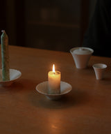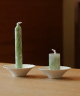 The "Blossoms" mini plate/candle holder has an elegant matte white "shuangbai" glaze. The purity and simplicity of the plate emphasizes its elegant form and enhances the experience of its usage.